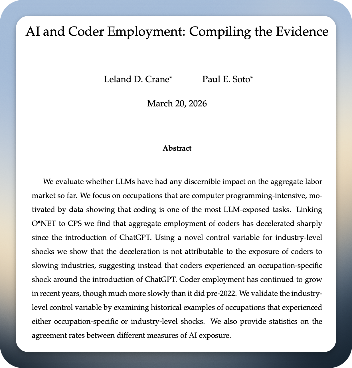 研究同时指出,目前程序员薪资并未出现明显下滑,冲击主要体现在岗位数量层面。作者也审慎强调,50 万缺口不等同于 50 万人失业,AI 之外的税务政策变化亦可能是干扰变量。