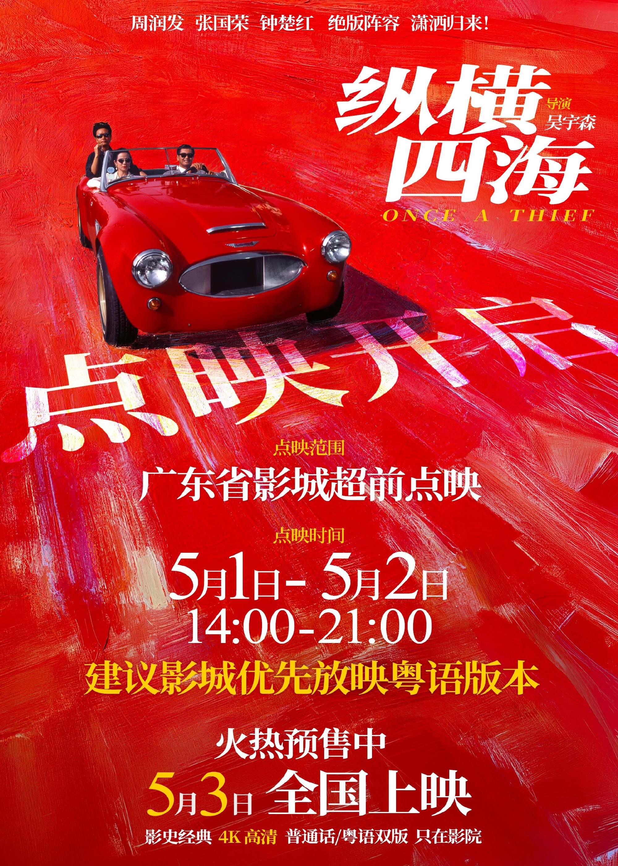 经典港片《纵横四海》4K 高清修复版正式宣布定档,将于 5 月 3 日登陆全国院线。影片还将于 5 月 1 日至 2 日 14:00~21:00 在广东省率先展开点映活动。本片将以普通话、粤语双版本上映。